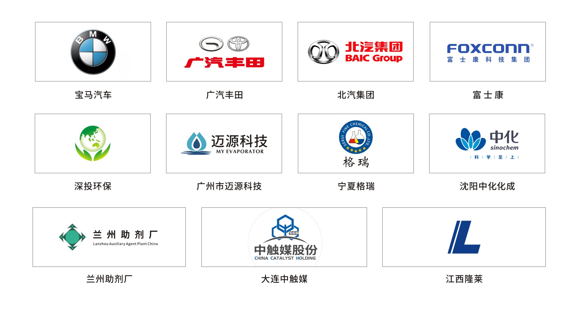 目前,公司已在成都、大連、蘇州、內(nèi)蒙古等地設(shè)立了辦事機(jī)構(gòu),服務(wù)的客戶包括深投環(huán)保、寶馬汽車、富士康、廈門嘉戎、寧夏格瑞,蘭州助劑廠、江西隆萊、大連中觸媒等行業(yè)內(nèi)領(lǐng)頭企業(yè),在國內(nèi)落地項目有170多家。